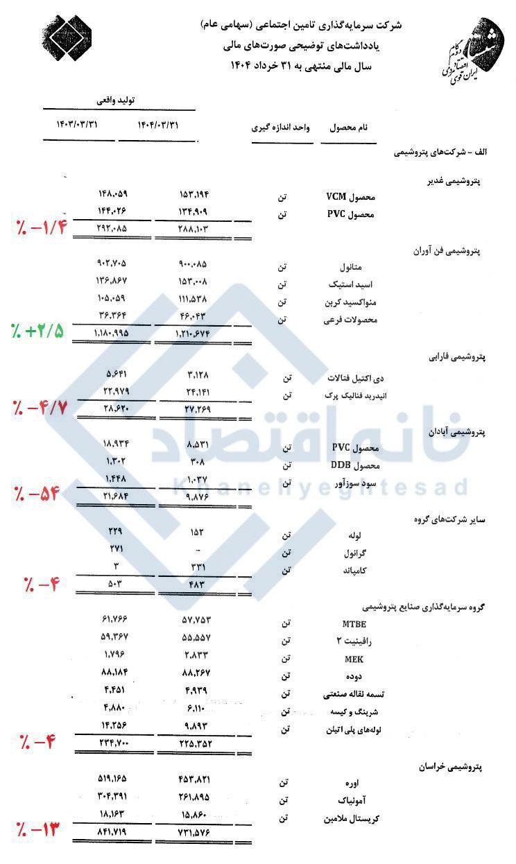 براساس صورت مالی شستا، تولیدات شرکتهای پتروشیمی زیرمجموعه این گروه طی سال مالی منتهی به بهار ۱۴۰۴ کاهش قابلتوجهی داشته است.